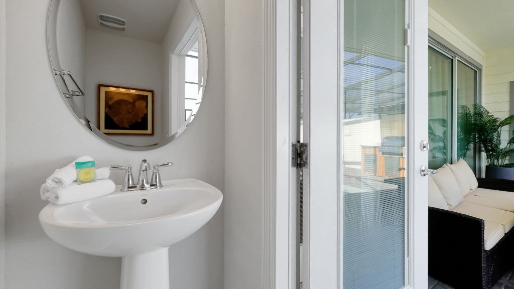 Convenient half bathroom located off the pool