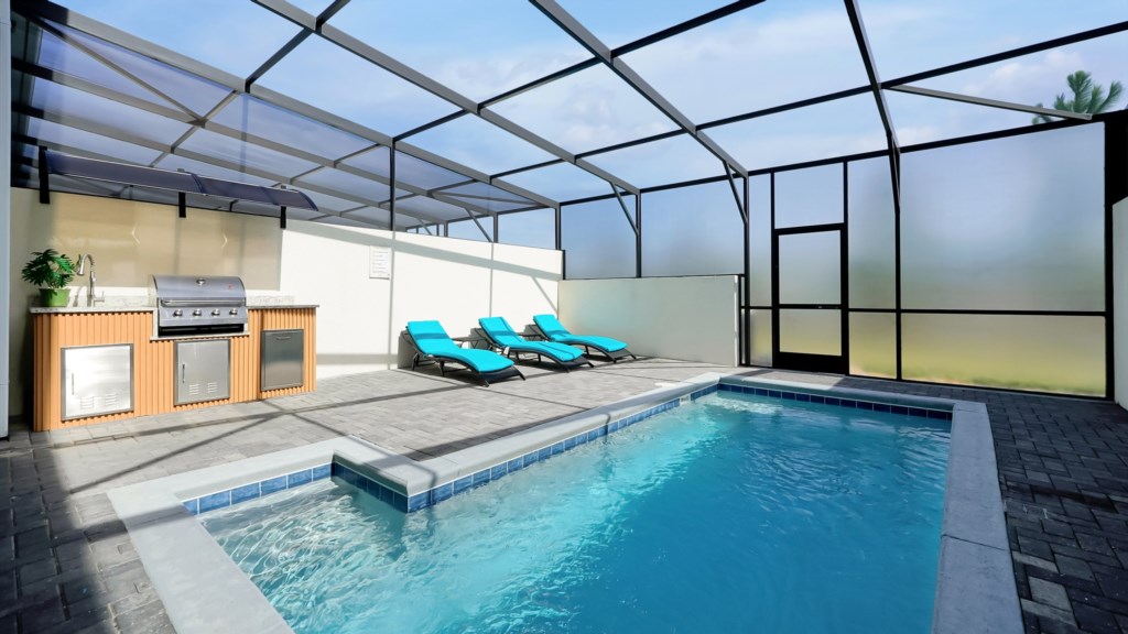 Private screened pool & BBQ included – perfect for relaxing or entertaining outdoors.