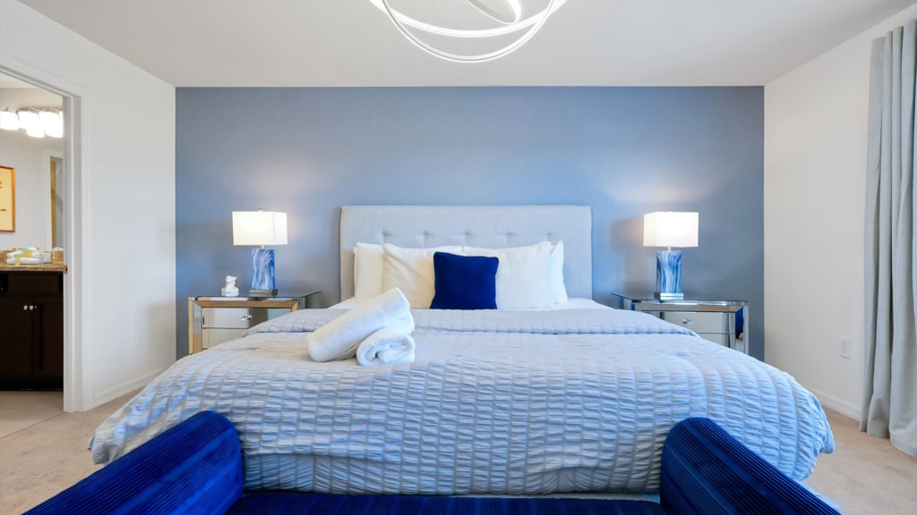 Bedroom 2 (Upstairs Primary Suite): King-size bed with en-suite bathroom
