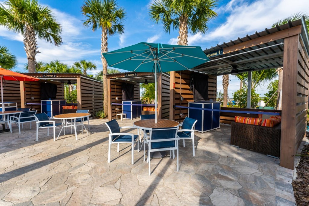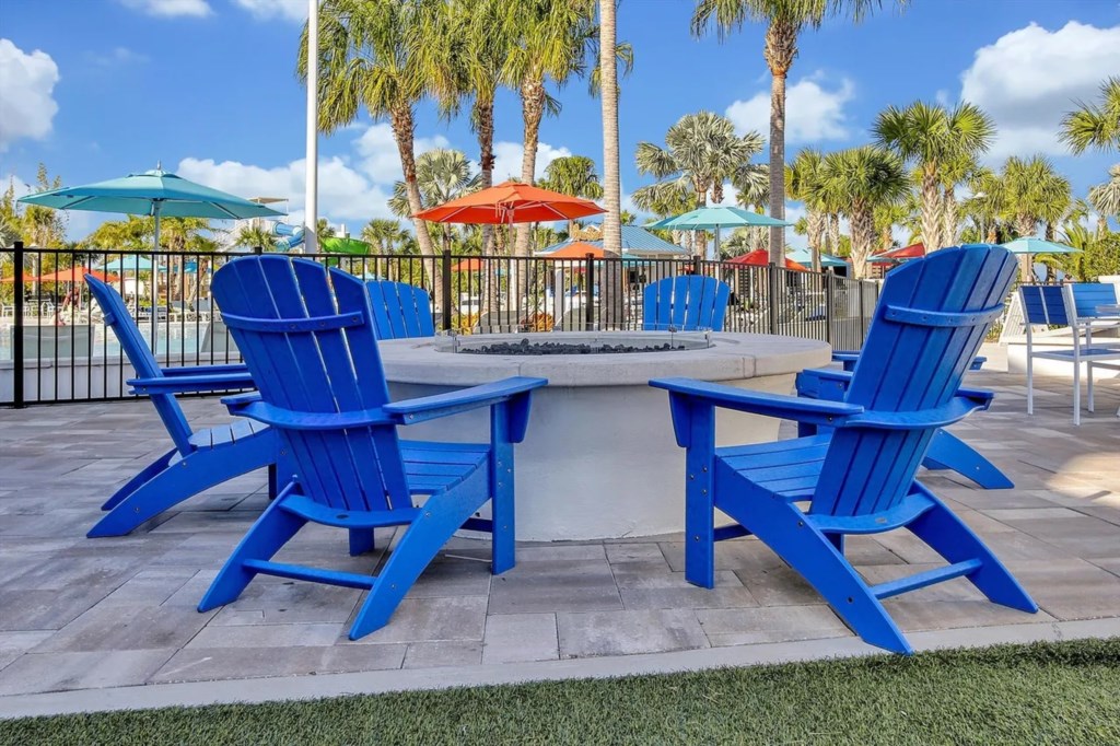 Playground, cabanas, fire pit & picnic areas